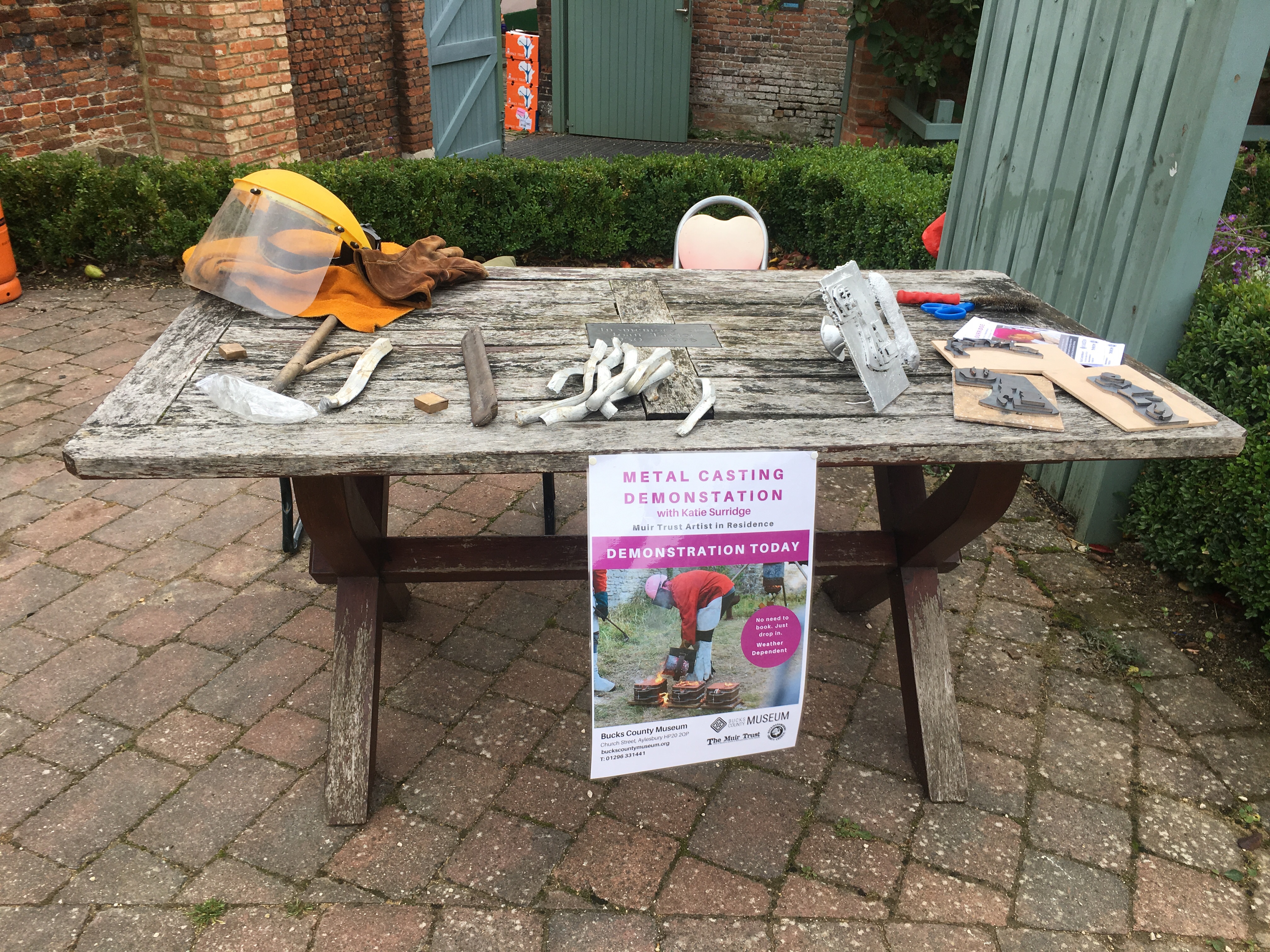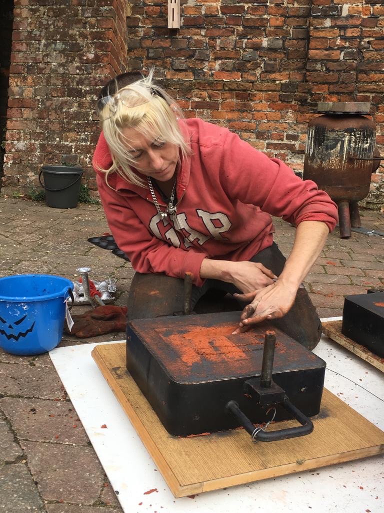 The aluminium got up to temperature in about half an hour and I did two pours over the course of the day. I also demonstrated how to pack the moulds .
